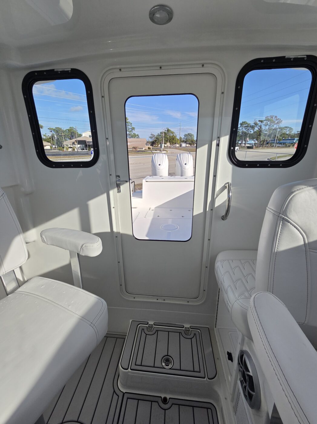 STANDARD CABIN CONFIRGURATION: Port: Step Down w/ forward facing seat and inward facing rear companion seat, Starboard: Single Captain Chair